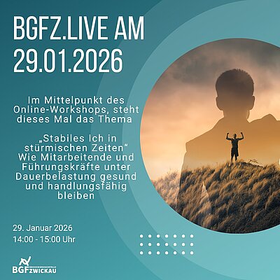 Die BGF-Koordinierungsstelle Zwickau bietet unter dem Titel "BGFZ.Live" einmal monatlich eine einstündige Online-Austauschrunde zu verschiedenen Gesundheitsthemen an. Die Veranstaltung ist kostenfrei und wird über die Plattform Zoom durchgeführt.