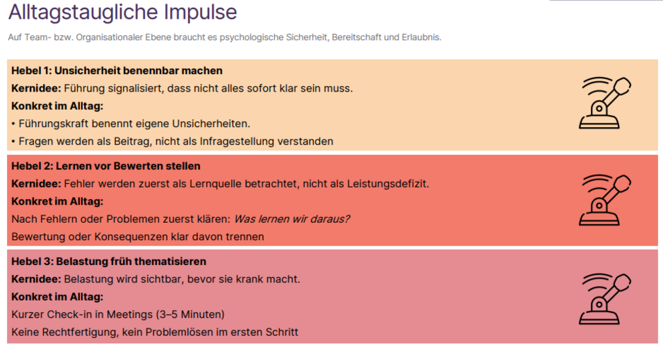 - psychologische Sicherheit als Grundlage gesunder Zusammenarbeit,